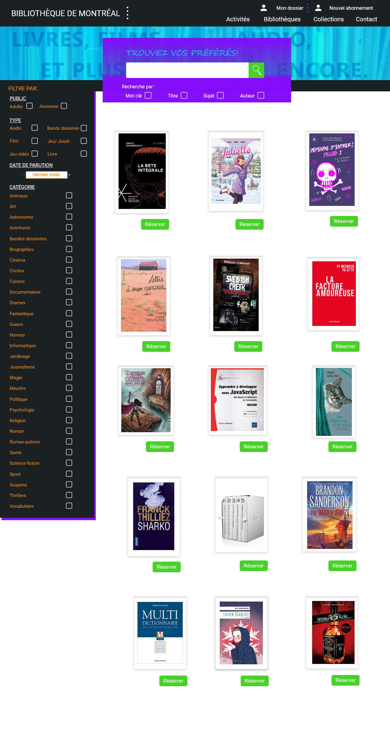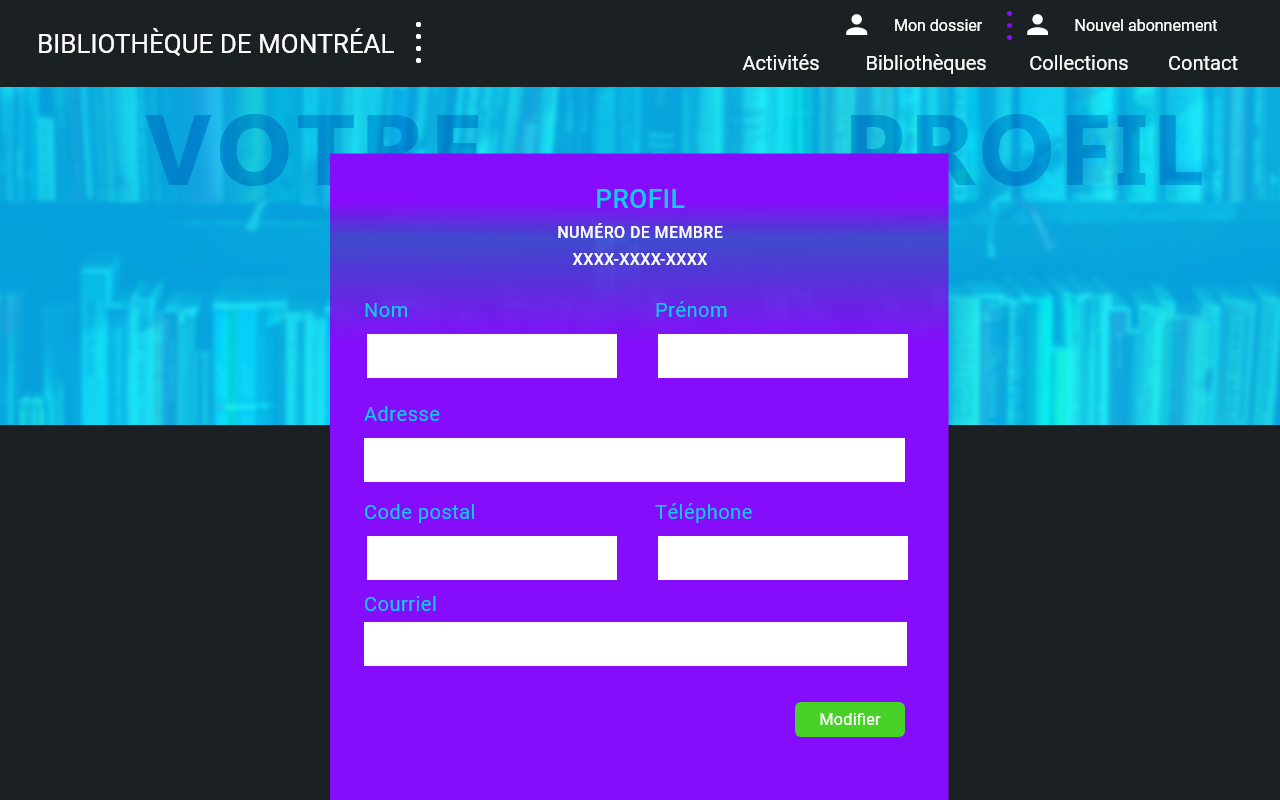 Dans le cadre d’un cours de Design, il fallait refaire un site Web en se basant sur le site de la bibliothèque de Montréal.